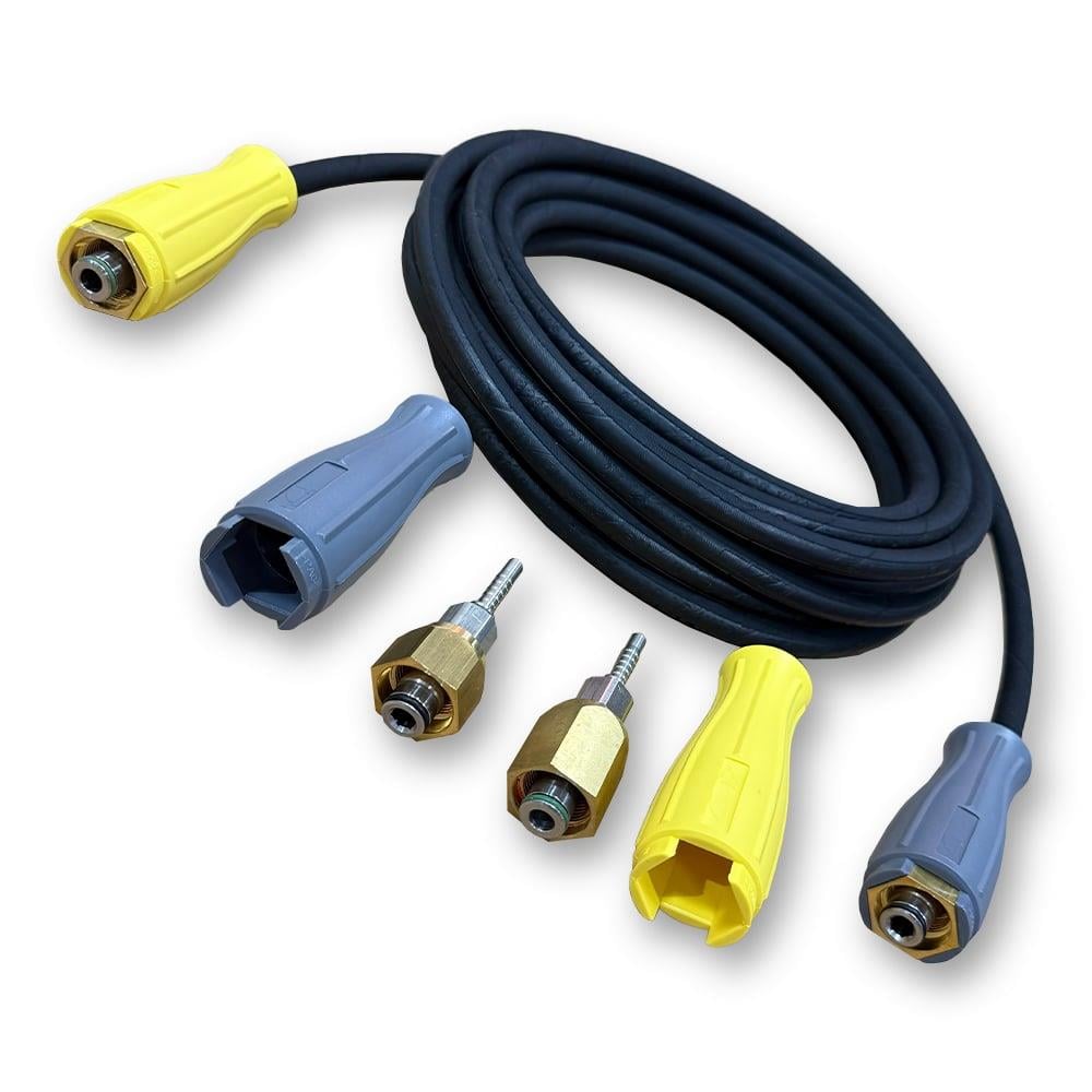 Шланг високого тиску для професійних апаратів Karcher HD. Гнучкий, легкий, стійкий до стирання і дуже зручний в роботі шланг. Фітинг підключення до пістолета має вбудований поворотний механізм, що виключає перекручування шлангу в процесі роботи. Внутрішній діаметр шланга 6 мм підходить для апаратів з продуктивністью (літражем) до 600 літрів на годину (або 10 л/хв) Якщо ваш апарат має більшу продуктивність, бажано замовляти шланг з внутрішнім діаметром 8 мм (DN8).